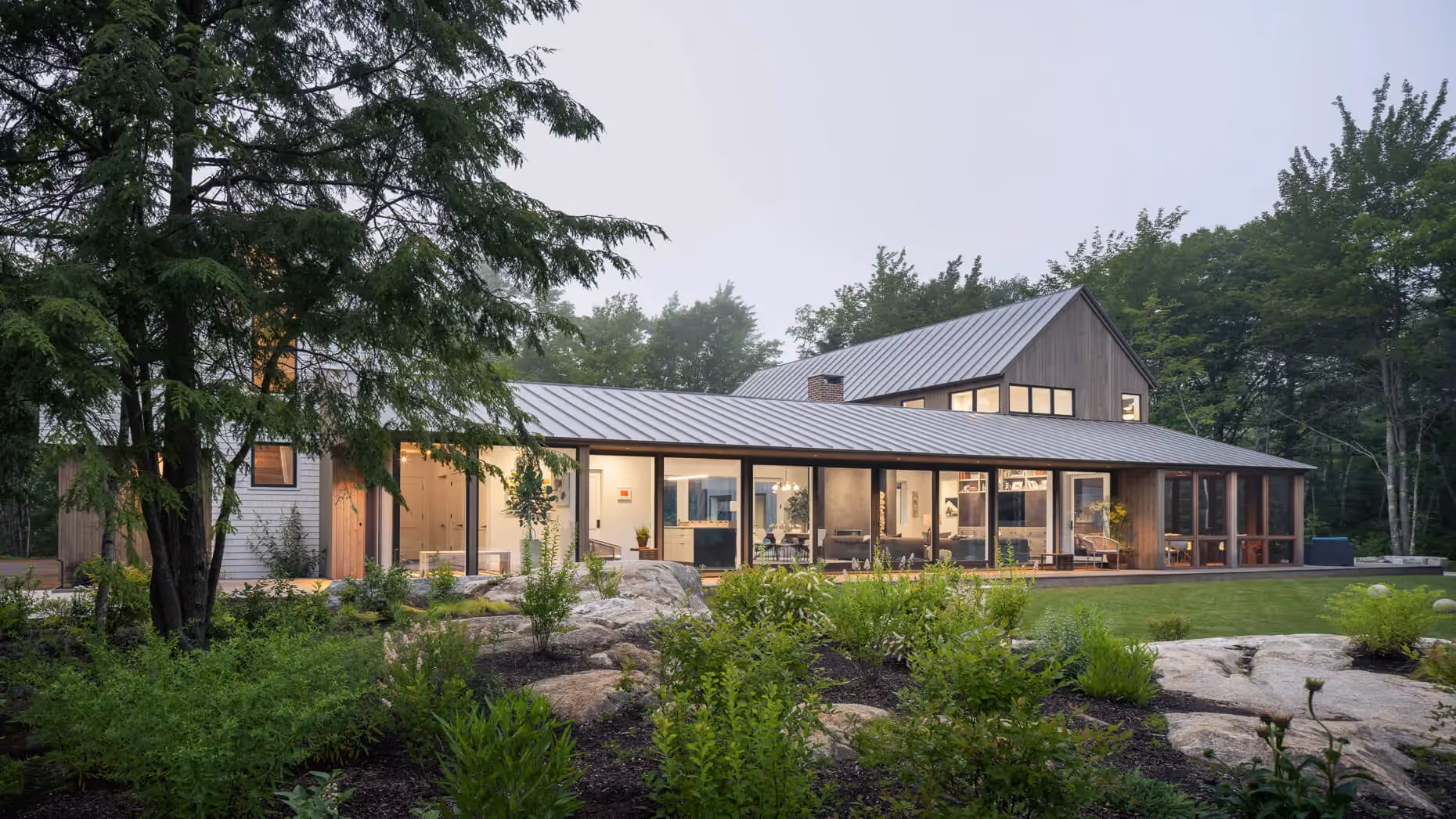 Kennebunkport is a coastal southern Maine community known for its beaches and village shopping.Near Goose Rocks Beach, Binnacle Hill is a wooded neighborhood with large ledge outcroppings and winding drives developed by Geoff Bowley of Kennebunk-based Bowley Builders. Having collaborated with Bowley on projects in the past, we were excited to help Geoff — our client in this case — with the design of his own home. To accommodate their growing young family, the Bowleys needed a spacious but contained playroom, an ample pantry and storage, a large garage, playful childrens’ rooms, and a private primary suite.