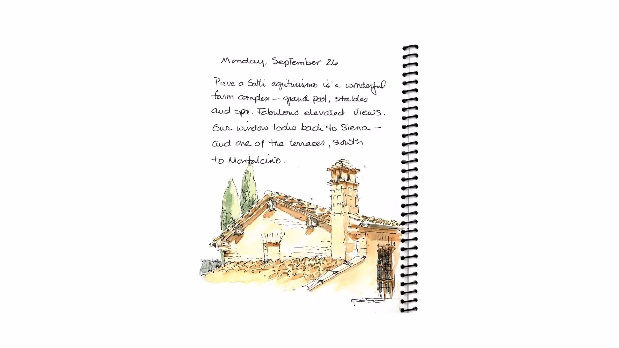 The days are getting shorter and I think back to our September walk in the Tuscan Hills. Our note book illustrates the medieval route of the Francigena through villages and beautiful Italian landscapes. Along the way we see 2500 years of architecture from an old Roman bath that acts as the village swimming hole, to protected stone cities on the ridge, to old farmsteads and the Fall harvest. It’s a time to sketch, relax, and enjoy the country at a walking pace. We return recharged and ready for the next season of designs and new homes.